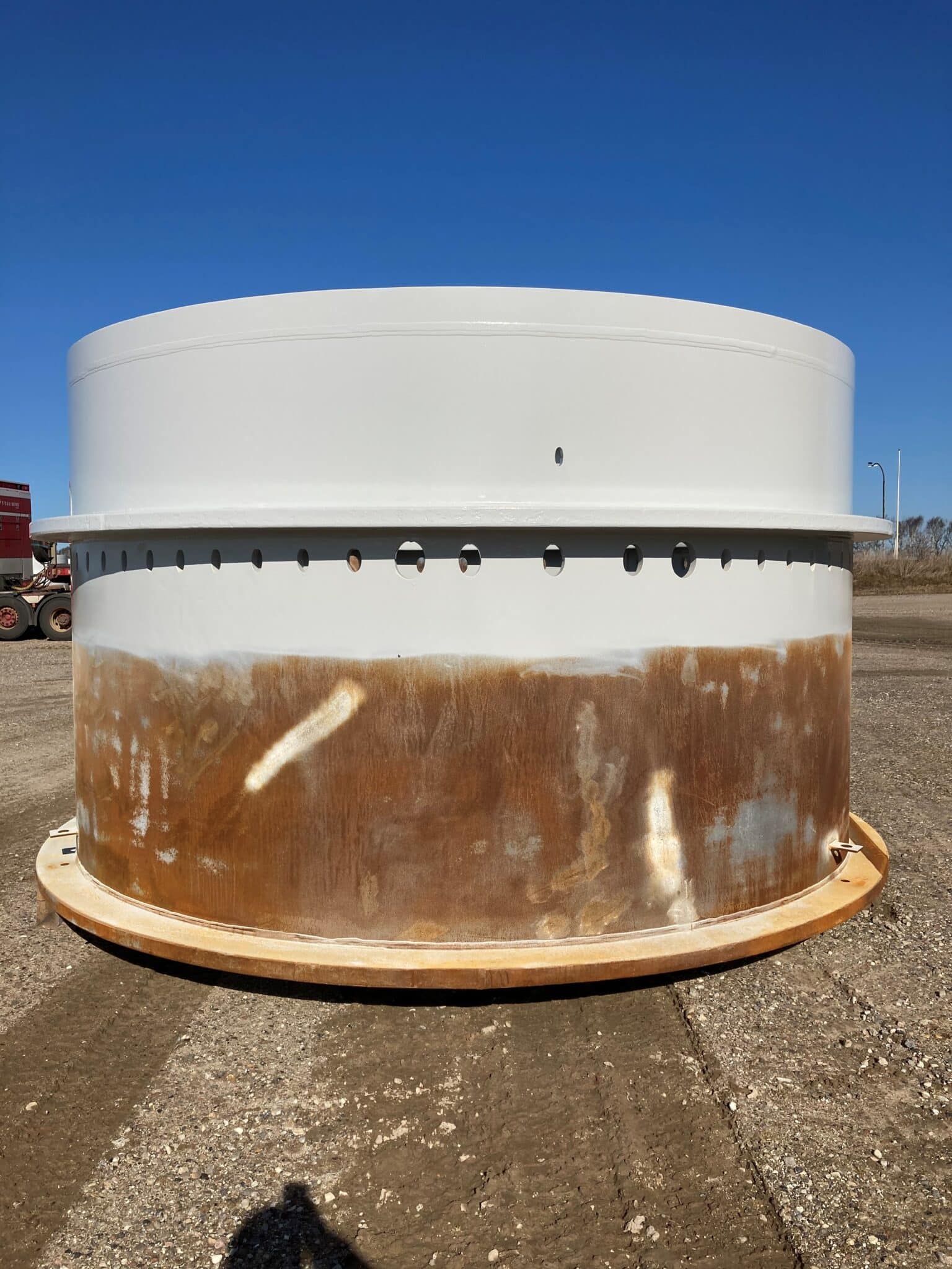 They have been ground, welded and NDT checked. Finally, the upper part has been painted. The lower part is placed in concrete during assembly.